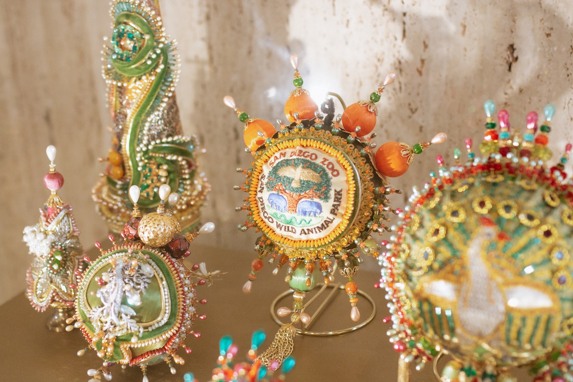 The Jewels of the Season ornaments are a sensory extravaganza, and have been a San Diego holiday tradition for many years. These incredible ornaments are entirely handmade and feature beads, sequins, gemstones, and filigree from around the world. The decorative ornaments, often compared to Faberge eggs, were designed and handcrafted by local San Diegan artisans, Florence Hord, and Elizabeth Schlappi.